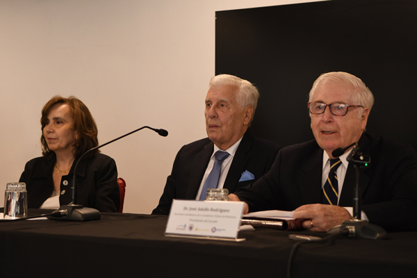 El presidente del jurado, Dr. Rodriguez, hizo una reseña con los principales méritos que llevaron al jurado a elegir al Dr. Csendes destacando sus aportes en cirugía digestiva en patologías de alta prevalencia en nuestro país como son el cáncer gástrico, patología biliar y cirugía bariátrica para el manejo de la obesidad, que lo llevan a ser un referente a nivel nacional e internacional. Así mismo se refirió a sus múltiples publicaciones, aportes en investigación, compromiso humano, formación de generaciones de cirujanos y su gran vocación académica que mantiene hasta el día de hoy.