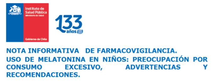 El Centro Nacional de Farmacovigilancia del ISP entre el 5 de enero y 2 de marzo 2026 publicó una serie de notas informativas con advertencia y recomendaciones sobre :  el excesivo uso de Melatonina en niños y potenciales riesgos asociados ,  uso  de Tamsulosina y riesgos de hipotensión grave, consideraciones a tener en cuenta   ante el fraccionamiento de fármacos sólidos , aún en aquellos ranurados, la importancia de una práctica prudente cuando se utilizan los medicamentos fuera de indicación (off-label) y recomendaciones sobre el uso de medicamentos ante incendios forestales, este último dirigido  a los diferentes niveles de organización del sector salud,